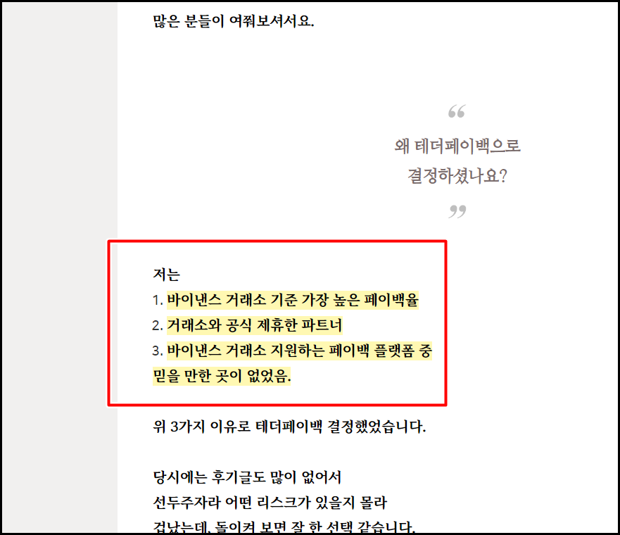 4. 테더페이백의 또 다른 후기가 궁금하다면?