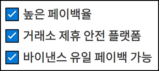 국내 최고, 최초 페이백 플랫폼! 과장 없는 진짜 페이백! '국내 유일' 바이낸스 페이백 가능.