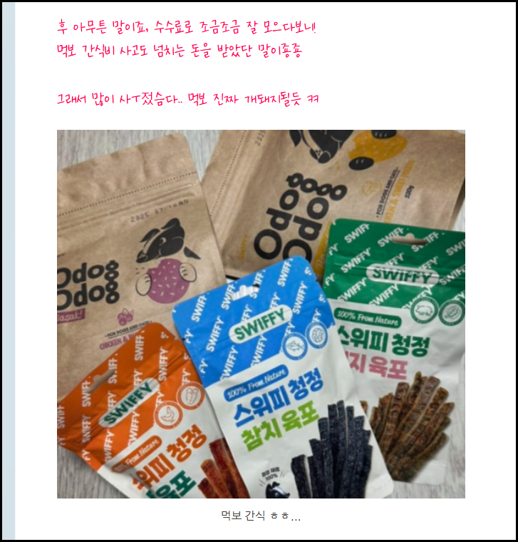 이쁜 강아지 간식 많이 사주셨다고 합니다 ㅎㅎ
