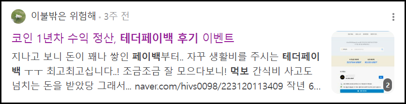 안녕하세요. 오늘은 제가 실제 사용하고 있는 테더페이백 플랫폼에 대해 소개, 후기글을 작성해 볼게요! 페...