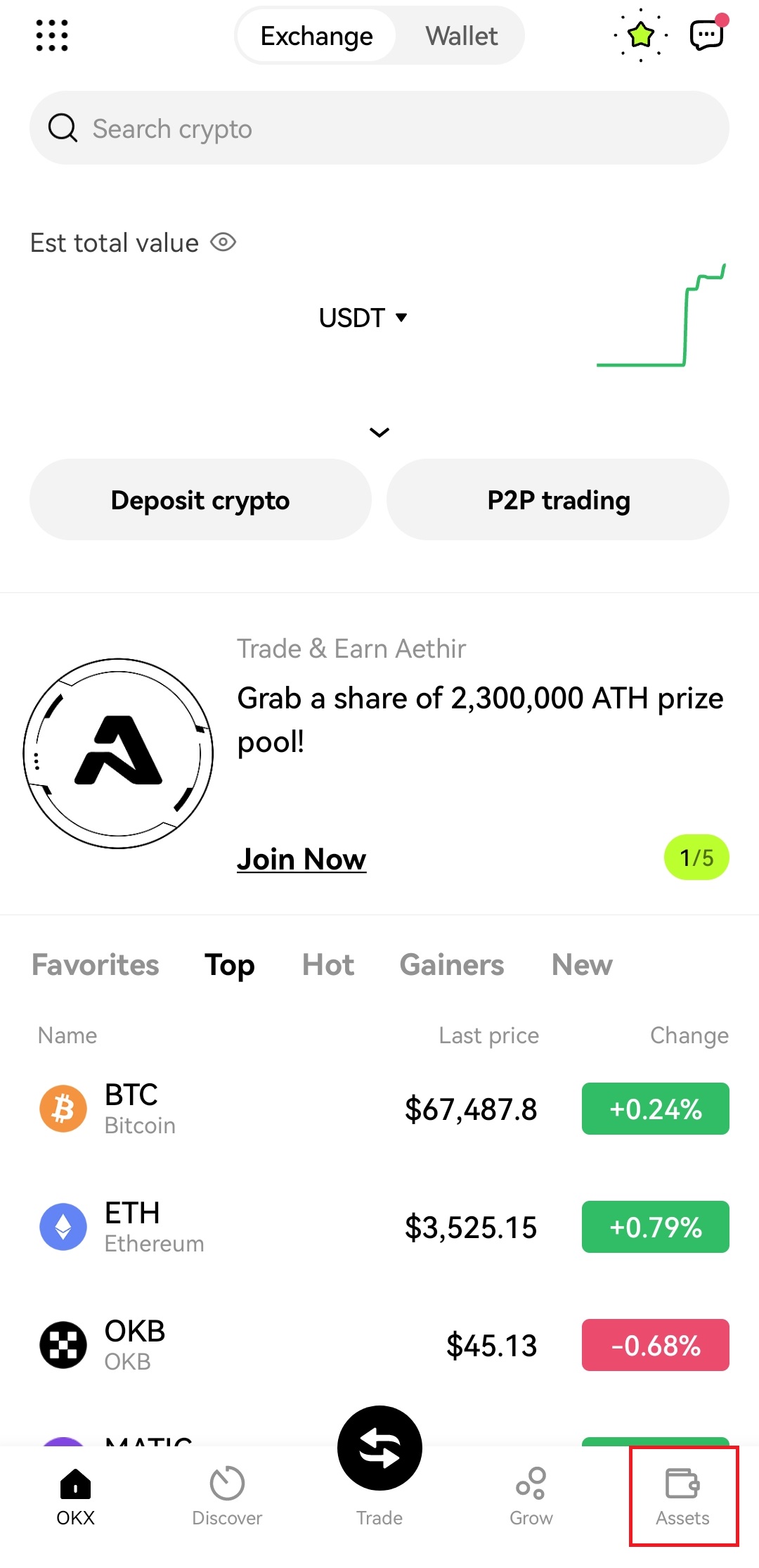 1) 아래에 있는 Assets(지갑)을 눌러주세요